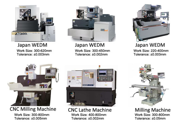 使用される材料に加えて、部品の製造に使用される機械と処理の種類は、完成部品の可能な公差に大きく影響します。 右の画像は、いくつかの一般的な加工機とSANS機械加工におけるそれらの公差です。